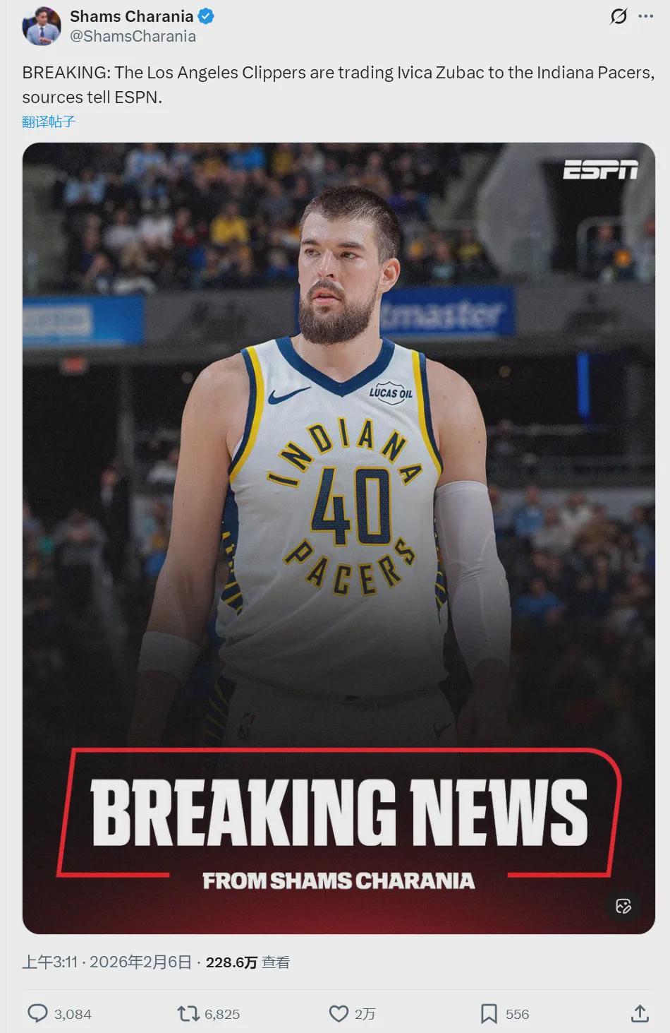 世界杯官方手机客户端-5换2!快船压哨交易!祖巴茨加盟步行者