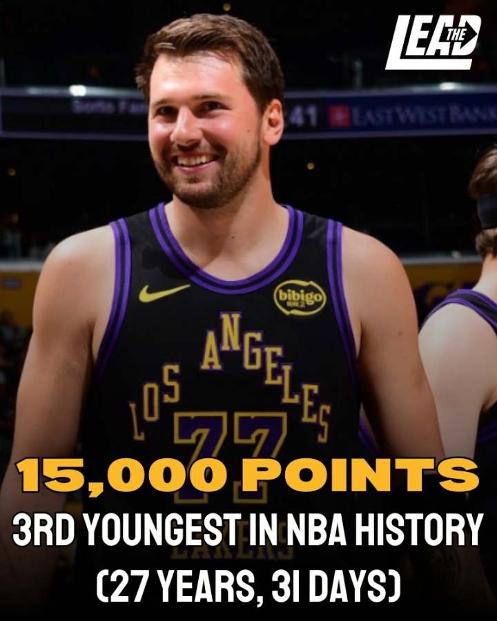 27岁31天的东契奇成为NBA历史第三年轻达成15000分的球员,超越科比(27岁136天),仅次詹姆斯(25岁79天)、杜兰特(26岁78天)。
